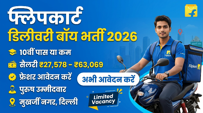 10वीं पास के लिए Flipkart Delivery Boy Job 2026 – सैलरी ₹27,578 से ₹63,069 | Mukherjee Nagar Delhi Apply Now